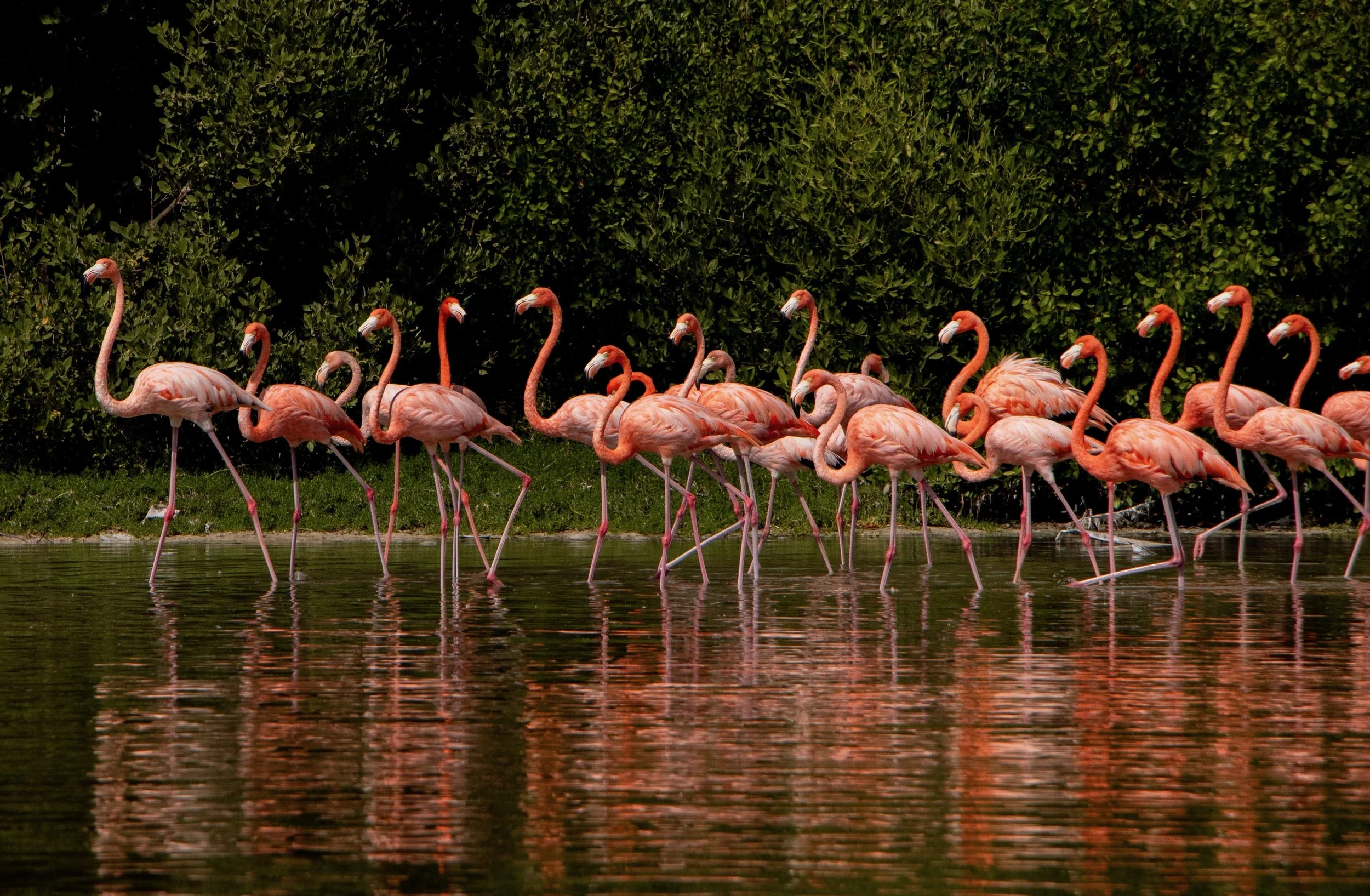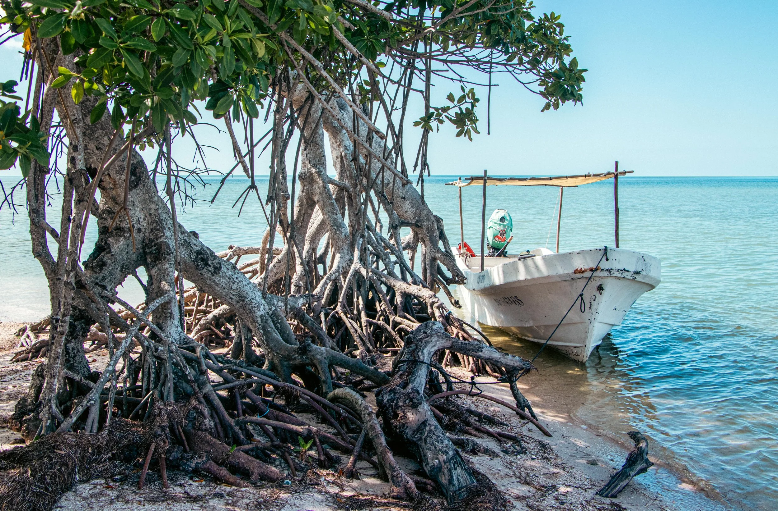 On the boat ride through the mangroves, our guide led us past flocks of flamingos feeding in the shallow marshes before heading to walk around a wooden platform among the mangroves. In some areas, underwater freshwater holes from cenotes caused mesmerizing swirls on the ocean water surface. This was the typical ecotour offered to visitors, absorbing ecological knowledge on flamingos, mangroves, and the local environment.