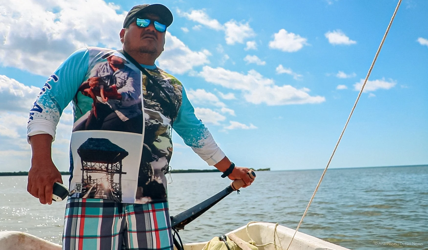 On a boat ride through the mangroves, our guide—a local, wore a rash guard printed with photos of him and his family fishing, proudly wearing this part of his identity like a uniform. Eager to share his knowledge of Isla Arena and the fishing dynamics with us researchers, he paused to speak to a few fishers in the area.